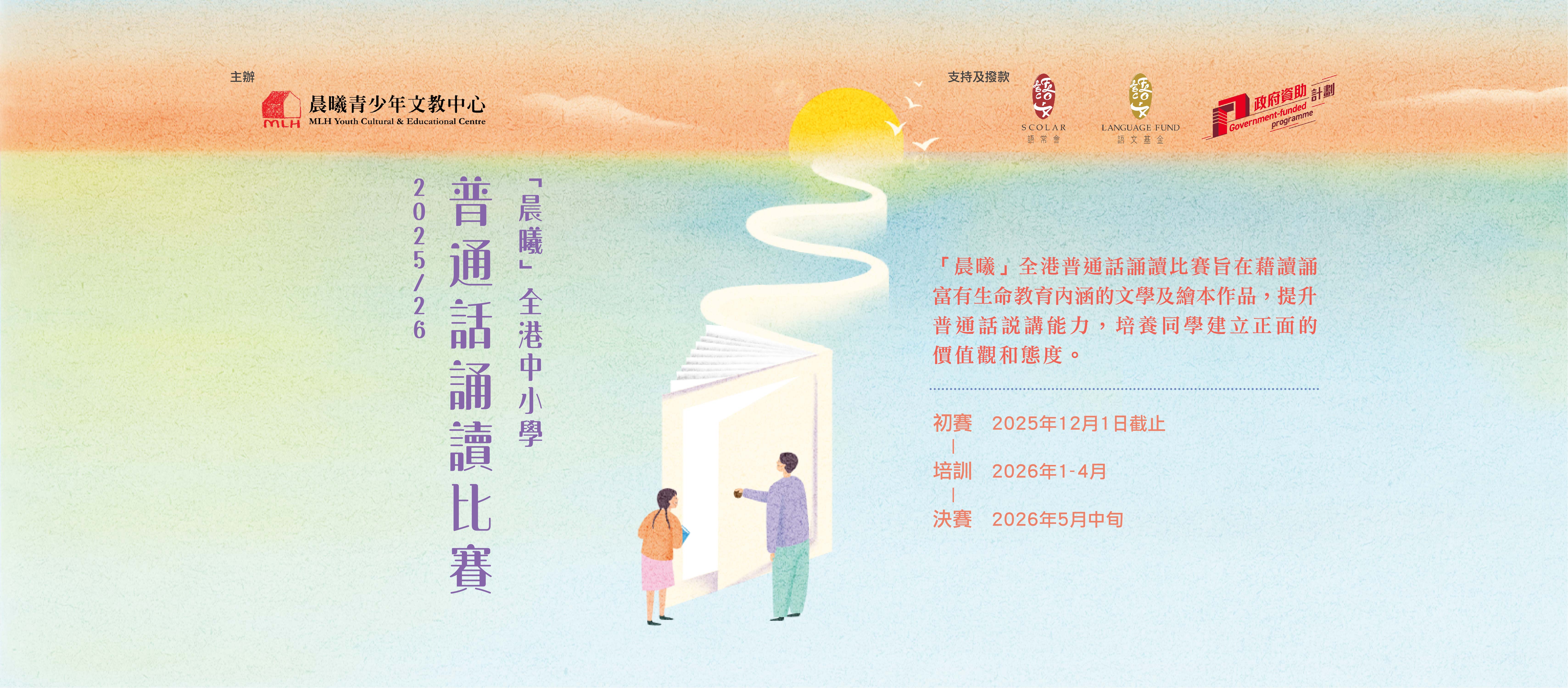 「晨曦」全港中小學普通話誦讀比賽2025/26 正式啟動啦,是次計劃獲得 語文教育及研究常務委員會 (語常會) 支持、 語文基金 撥款。