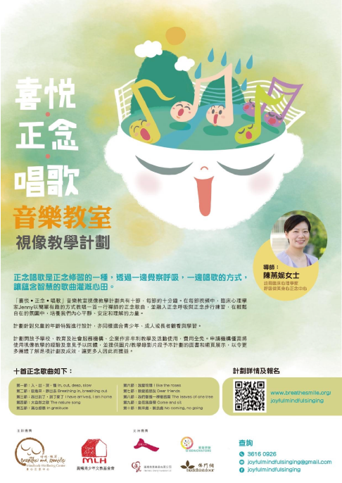 「喜悅•正念•唱歌」⾳樂教室視像教學計劃(以下簡稱「正念⾳樂教室」) 由呼吸微笑⾝⼼正念中⼼及晨曦⻘少年⽂教基⾦會聯合推出。